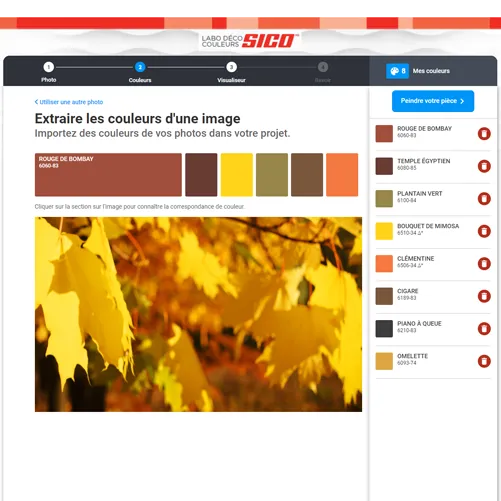 Vous avez toujours voulu peindre vos murs de la couleur des feuilles d’érable en automne ou de la couleur du sable des îles? Essayez le Labo Déco couleurs SICO pour créer votre palette de couleurs personnalisée. Téléchargez une image et laissez notre outil générer des couleurs que vous pouvez utiliser pour peindre une pièce. Vous pouvez y découvrir votre nouvelle couleur SICO préférée!